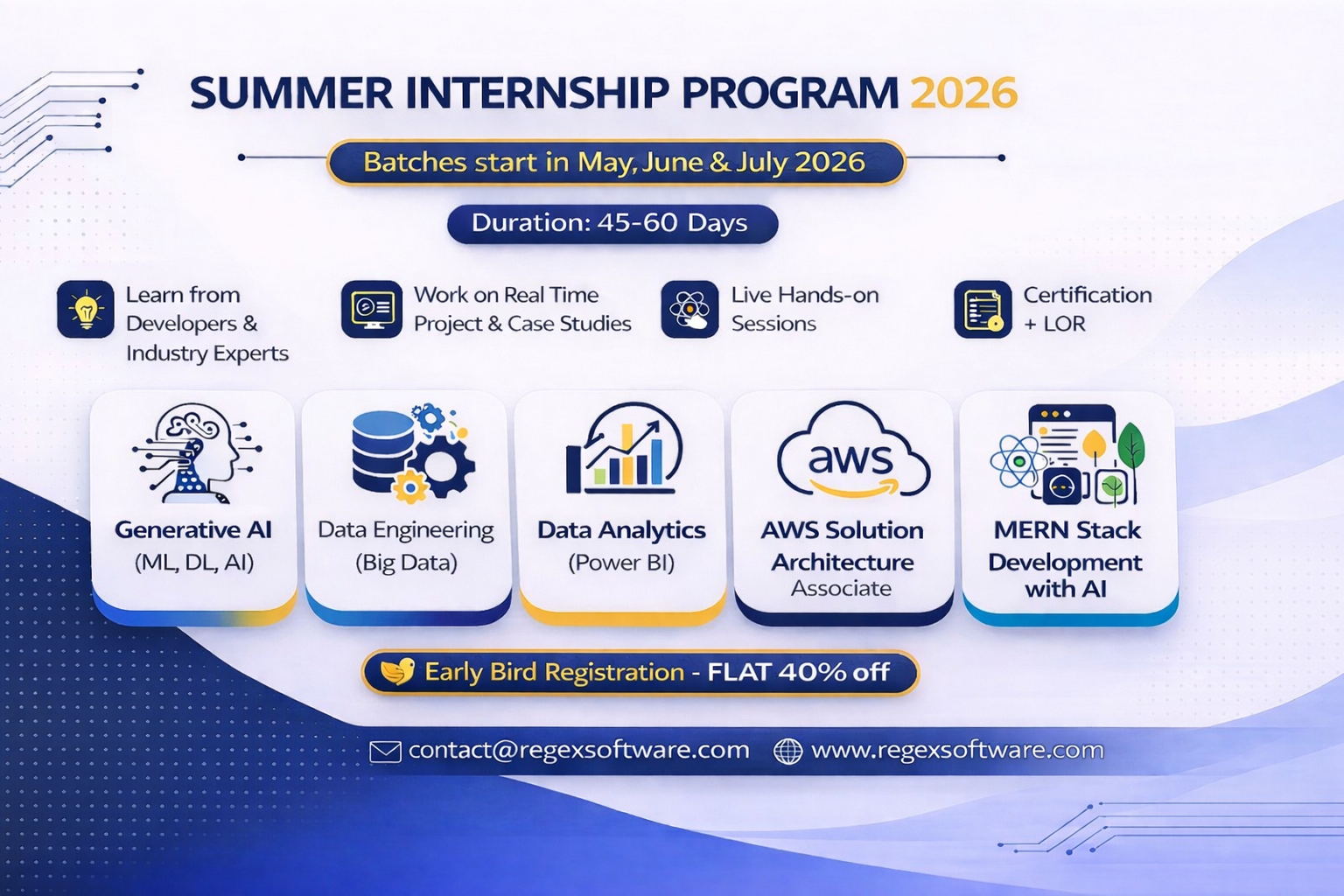 REGex Software Services is Rajasthan’s trusted Development & leading Ed-Tech company offering industry-aligned Summer Internship programs in Jaipur. Our trainers bring corporate experience from leading MNCs and reputed organisations, ensuring outcome-driven learning aligned with Industry 4.0 standards