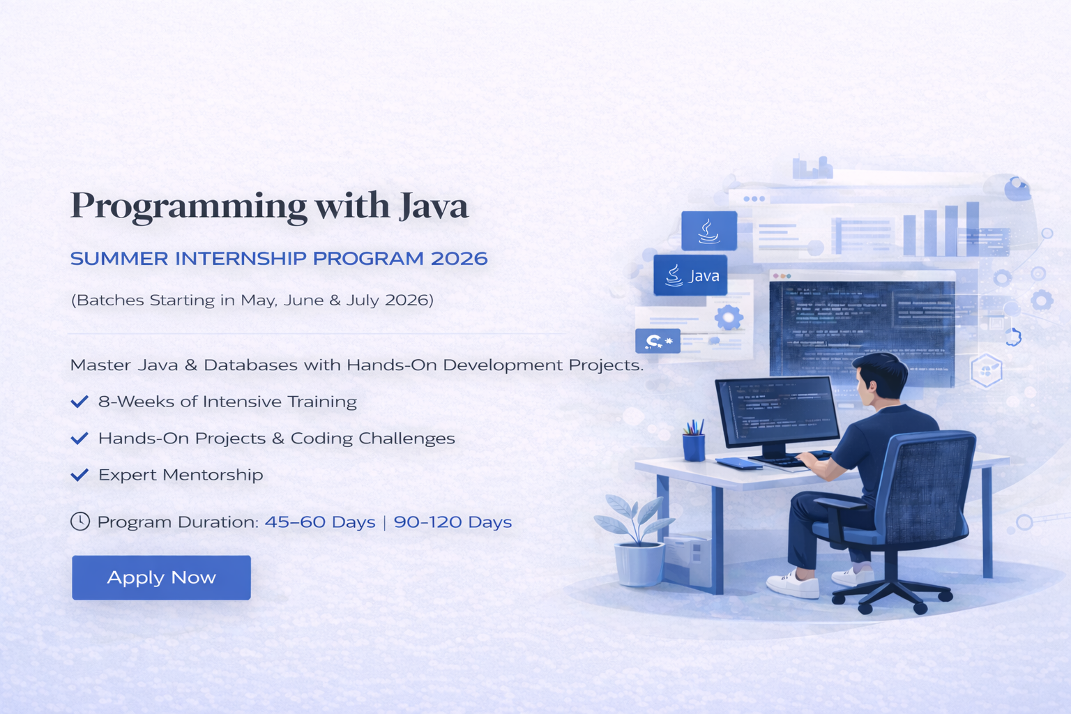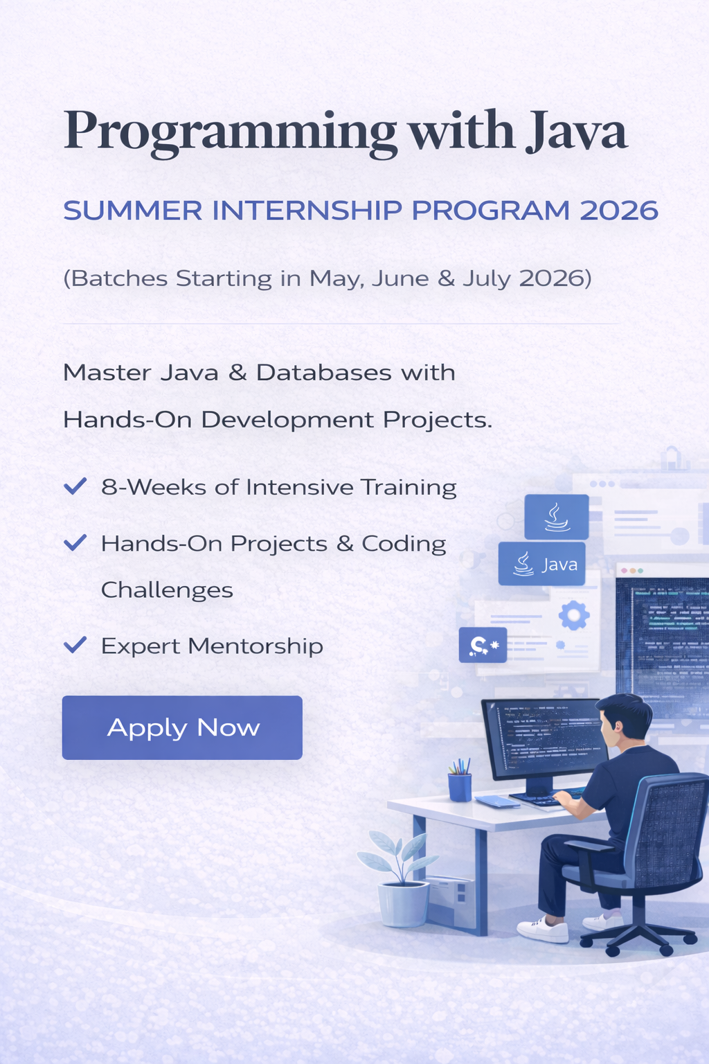 With the belief to build a healthy ecosystem as per the Industry Standards REGex Software brings Program on “Programming with Java”. We organize CP with Java Program for improving the knowledge and skills of the Students, so that they can become expert in the field of Programming and get their Dream Job in Software Development Field in Big MNCs.